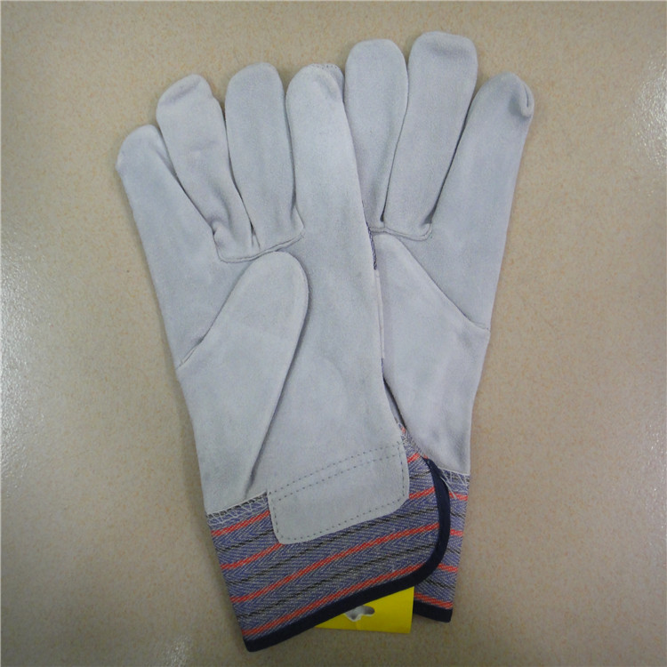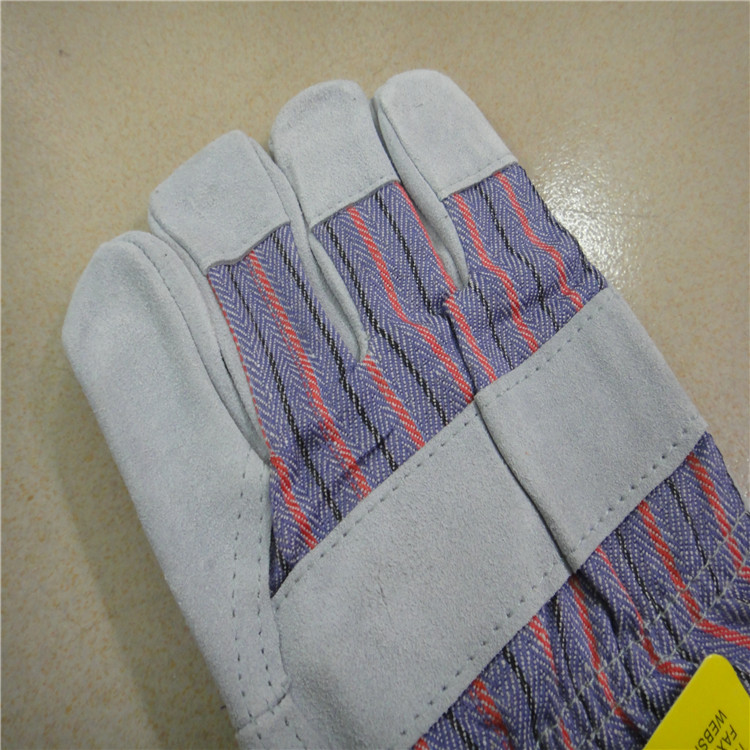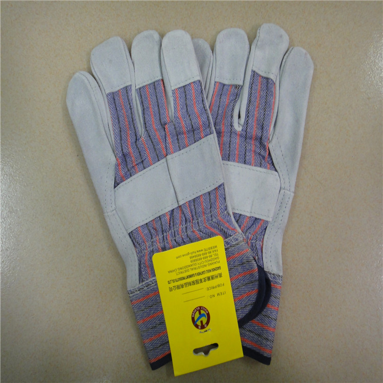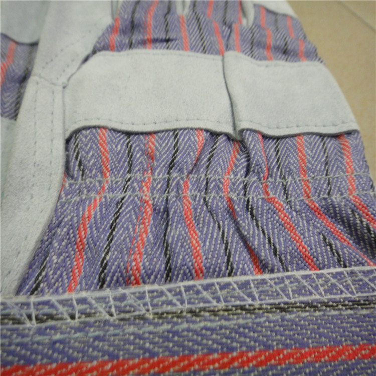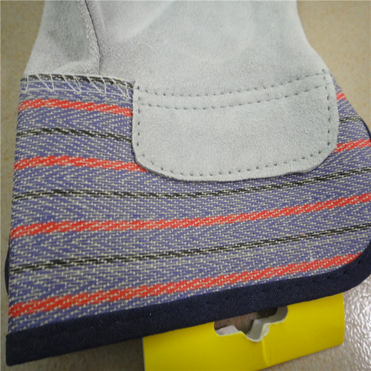 10.5寸本色牛二層工作手套,全掌款,藍黑紅背布和膠袖,雜絨半里,拉藍色邊。