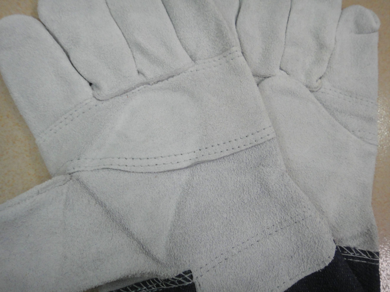 10.5寸本色牛二層皮工作手套,駁掌,牛仔背布和漿袖,雜布半里。