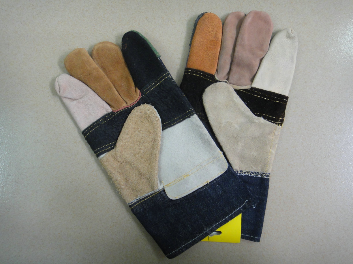 10.5寸七彩反絨家私皮工作手套,駁掌款,牛仔背布和漿袖,雜布半里。