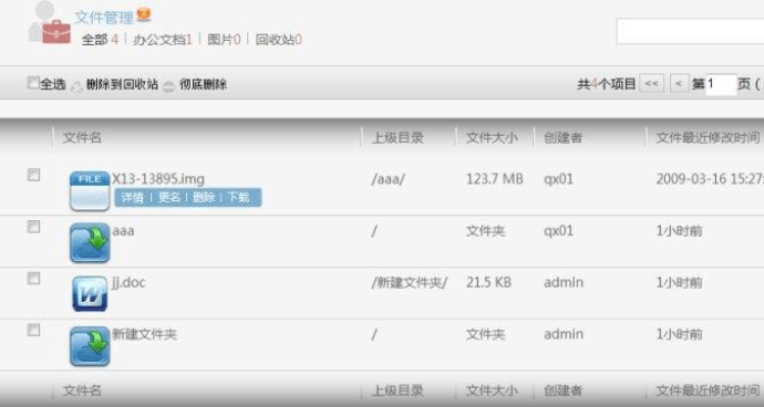 回收站管理是管理被刪除的文件??梢赃€原,也可以刪除,當然也可以下載。