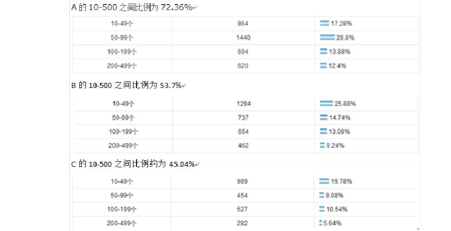 我們都會與其他同類微博進(jìn)行比較,可是究竟如何來比較呢?直接以粉絲數(shù)來衡量還是轉(zhuǎn)發(fā)數(shù)、銷量訂單?之前我提過,我們不應(yīng)盲目追求高數(shù)量,而應(yīng)該注重高質(zhì)量。相互比較之前一定要清楚彼此的目標(biāo)群體規(guī)模,知名度影響,甚至行業(yè)局限性,所以不可盲目比較。我們?nèi)匀灰怨P者熟知的ABC 三個企業(yè)來分析??纯慈叩幕緮?shù)據(jù)。