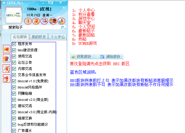 3 軟件主介面功能簡介(注意:第一次使用時要先點擊獲取版塊 (首次運行如果BBS 分區(qū)比效多需要等待1-2分鐘自動獲取時間) )