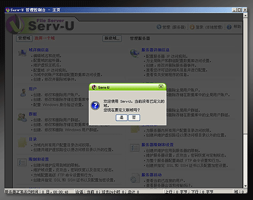 使用Serv —U 來(lái)搭建FTP 服務(wù),需要先下載安裝Serv —U , 其安裝好后的界面如圖5: