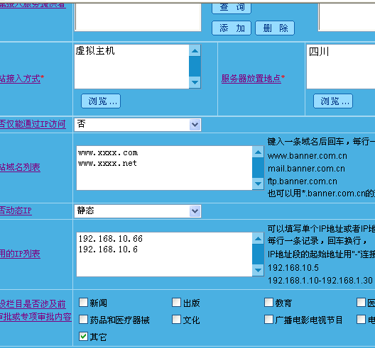 如第一步,如實(shí)填寫,有什么不明白的可以看滾動(dòng)說明,其中,所屬接入服務(wù)提供者選項(xiàng)中,輸入四川二字查詢,就可以查到四川省電信有限公司了,選中點(diǎn)添加,將四川省電信有限公司添加到已選所屬接入服務(wù)提供者,如圖: