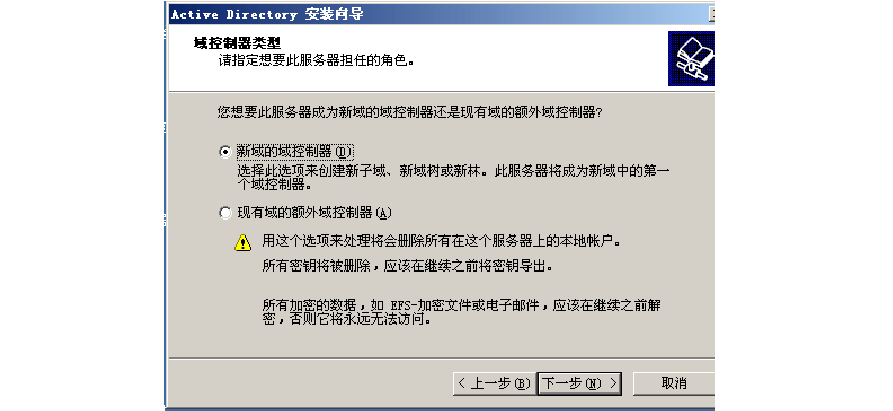 4、 在域控制器類型處懸在“現(xiàn)有域的額外域控制器”