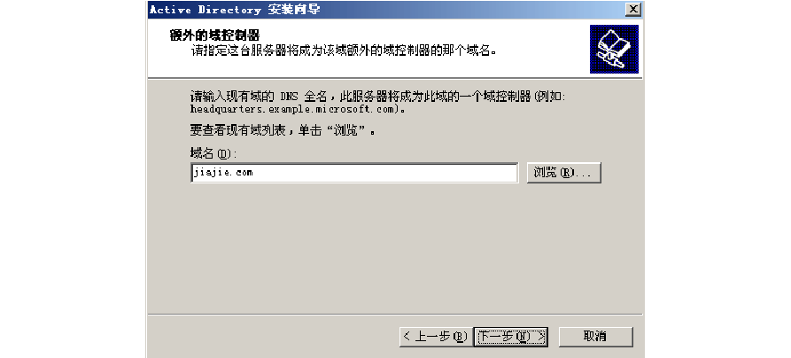 6、 輸入額外的域控制器域名“Jiajie.com ”