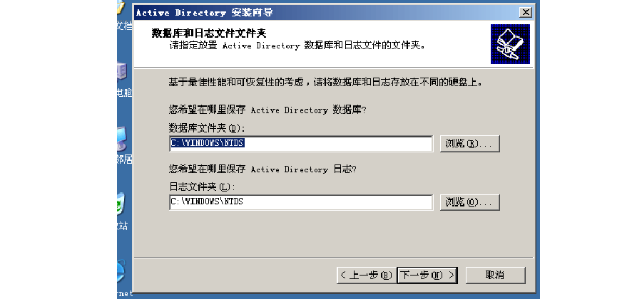 7、 輸入轟動(dòng)目錄數(shù)據(jù)庫(kù)和日志文件的存儲(chǔ)位置