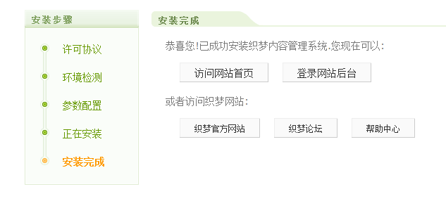 候會(huì)贈(zèng)送,沒有贈(zèng)送的就單獨(dú)買一個(gè),填寫完數(shù)據(jù)庫信息后點(diǎn)繼續(xù)跳轉(zhuǎn)到這個(gè)界面,安裝完成。