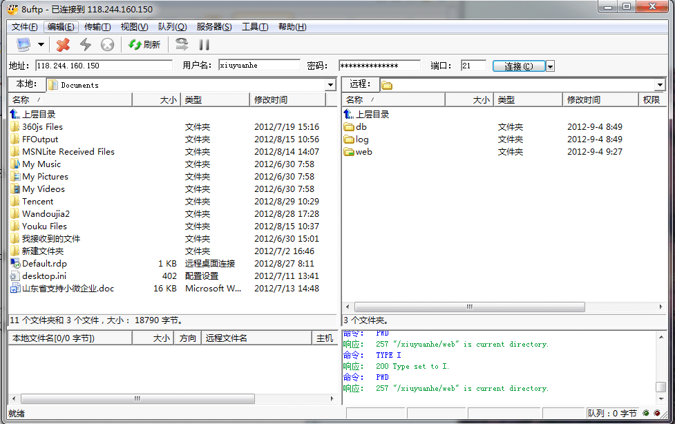 打開FTP 上傳工具,輸入IP ,用戶名和