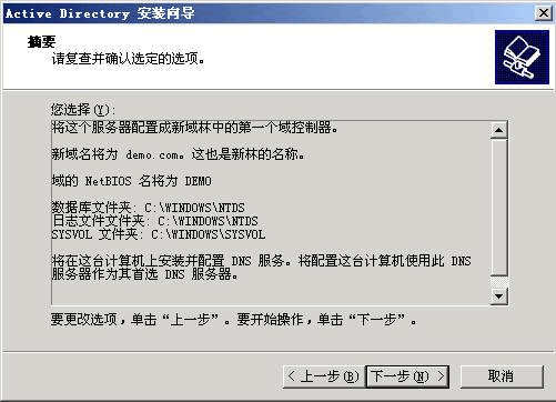 在這里要指定AD 數(shù)據(jù)庫和日志的存放位置,如果不是C 盤的空間有問題的話,建議采用默認(rèn)。