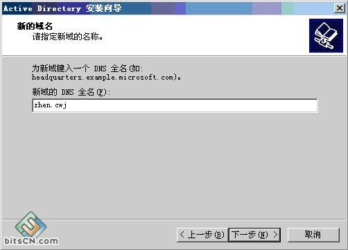 (7)輸入域的dns 全名, 如:zhen.cwj ,點(diǎn)" 下一步"