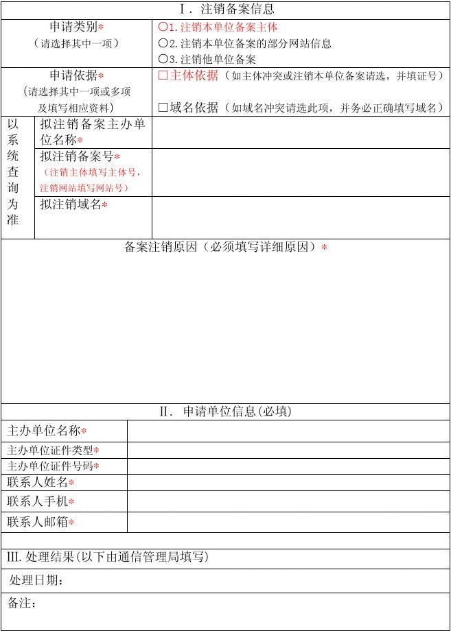 3.本申請表適用于注銷主體備案與網站備案申請。注銷備案主體是指注銷已通過