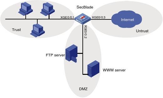 某公司以SecBlade 防火墻作為網(wǎng)絡(luò)邊界防火墻,連接公司內(nèi)部網(wǎng)絡(luò)和Internet 。公司需要對(duì)外提供WWW 和FTP 服務(wù)。