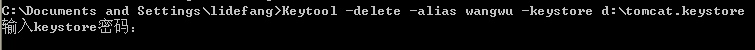 或者在命令里輸入刪除的別名Keytool -delete -alias wangwu -keystore d:tomcat.keystore 輸入密碼