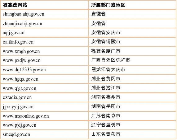 截至1月31日仍未恢復(fù)的部分被篡改政府網(wǎng)站3如表2所示。
