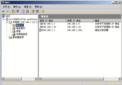 ⑴選擇“開(kāi)始”→“所有程序” →“管理工具” →“DHCP”選項(xiàng),打開(kāi)“DHCP”窗口,如圖2所示。