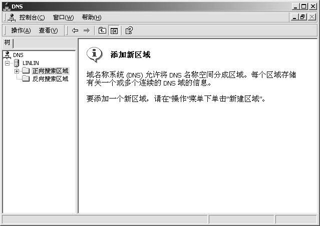 步驟 2. 由于我們已經(jīng)安裝了 DNS 服務(wù),因此服務(wù)器的主機(jī)名會出現(xiàn)在 DNS 控制臺的列表中。在控制臺中雙擊 DNS 服務(wù)器的名稱,將它名稱前的“+” 號展開,就可以看到“正向搜索區(qū)域”和“反向搜索區(qū)域”。暫時這兩個區(qū)域都為空(如圖3) 。