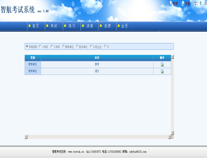 分類: 如果科目很多,超級管理員可以將科目分類,這樣在考生登錄考試時,便于從自己的分類中找到自己的科目。