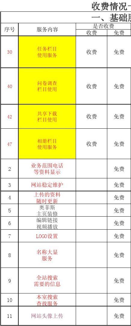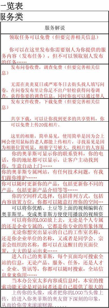 奧菲斯普通用戶(免費)服務(wù)一覽表