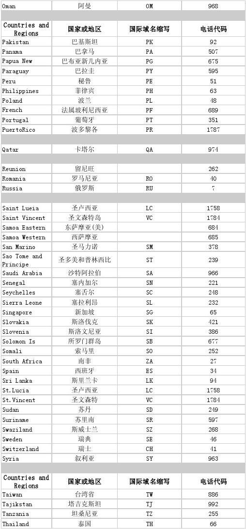 世界國家及地區(qū)大全