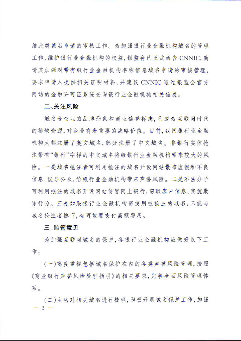 中國銀監(jiān)會辦公廳關(guān)于加強銀行業(yè)金融機構(gòu)域名保護工作的通知