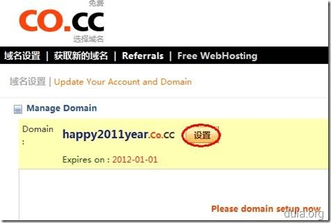 但是,根據(jù)CO.CC 的規(guī)定,如果沒有在域名注冊成功后的48小時內(nèi)對域名進行“設(shè)置”,域名將被取消。所以“設(shè)置”這一步驟也是必須的。其實非常簡單。請看第三步——
