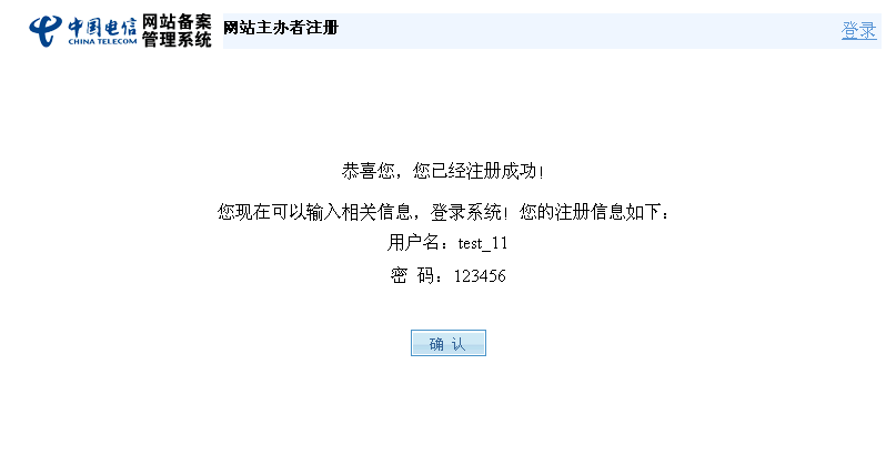 注冊(cè)成功后,系統(tǒng)會(huì)給出如下提示頁(yè)面: