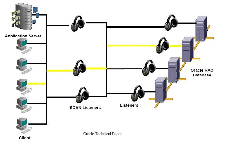 從這個(gè)原理圖,可以看出,scan ip其實(shí)是ora cle在客戶端與數(shù)據(jù)庫(kù)之間,新加的一個(gè)連接層,當(dāng)有客戶端訪問(wèn)時(shí),連接到 SCAN IP LISTENER, 而SCAN IP LISTENER接收到連接請(qǐng)求時(shí),會(huì)根據(jù) LBA 算法(所謂LBA 算法,就是least loaded instance),將該客戶端的連接請(qǐng)求,轉(zhuǎn)發(fā)給對(duì)應(yīng)的instance 上的VIP LISTENER,從而完成了整個(gè)客戶端與服務(wù)器的連接過(guò)程。簡(jiǎn)化如下: client -> scan listener -> local listener -> local instance