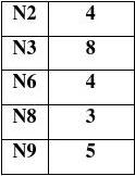 N2 4+1=5 N3 8+1=9 N6 4+1=5 N8 3+1=4 N9 5+1=6