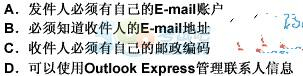 參考答案:C 參考解析:用電子郵件時(shí),收件人可以沒有自己的郵政編碼,但發(fā)件人必須有收件人的E-mail 地址。