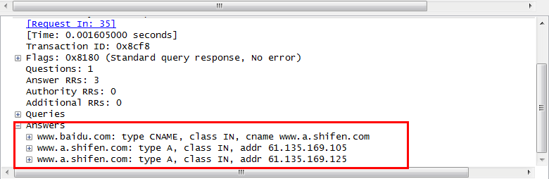,檢查DNS 響應消息, 這個消息提供了多少回答?每一個回