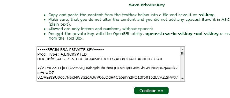 十一、吧生成的公鑰復(fù)制粘貼到記事本,并改名為ssl.key. 然后點(diǎn)擊繼續(xù)。 十二、如果有多個(gè)域名,選擇你需要的域名,點(diǎn)擊繼續(xù)。