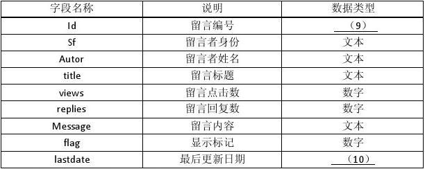 該網站數據庫采用Access, 其數據庫名為data.mdb ,表為post 。Post 表設計如下表4-1所示。