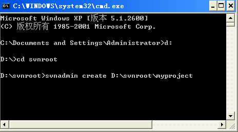 在D:創(chuàng)建svnroot 文件夾,然后通過svn 的svnadmin 命令創(chuàng)建數據倉庫。 (注意:D:svnrootmyproject 這個路徑是區(qū)分大小寫的)