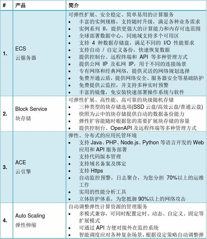 阿里云產(chǎn)品匯總2016/1/17一、彈性計(jì)算 ,二、數(shù)據(jù)庫 ,三、存儲(chǔ)與CDN ,四、網(wǎng)絡(luò)