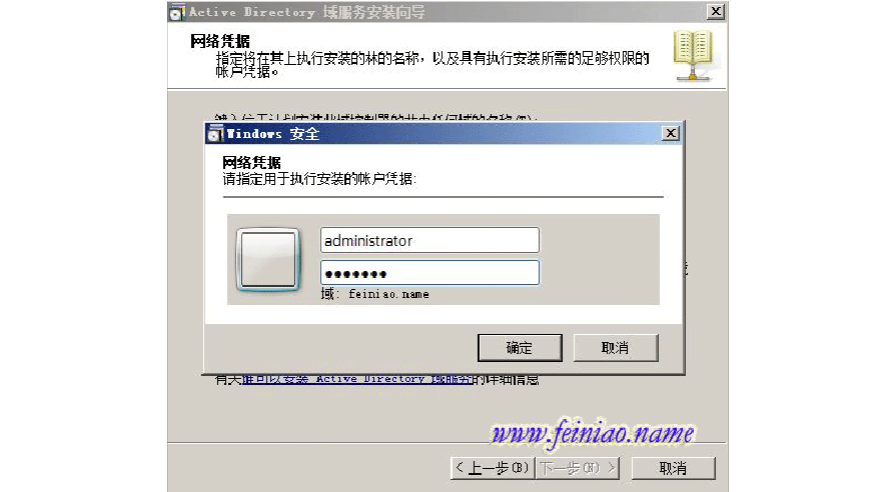 會(huì)出要要求網(wǎng)絡(luò)憑據(jù)對(duì)話框,這里需要輸入具有管理權(quán)限的用戶名和密碼,完成后點(diǎn)擊“確定”,之后再點(diǎn)擊“下一步”,