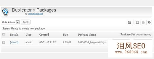 Duplicator plugin 菜單,出現(xiàn)一個(gè)類似下面的屏幕。只需點(diǎn)擊創(chuàng)建按鈕,創(chuàng)建一個(gè)新的包。