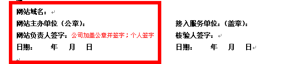 (1) 填寫說明,只能用手寫,填網(wǎng)站主辦者基本信息和網(wǎng)站負(fù)責(zé)人簽字,公司加蓋公章,蓋章要蓋在網(wǎng)站負(fù)責(zé)人簽字那一欄; 個(gè)人簽字即可,黑色簽字筆填寫;