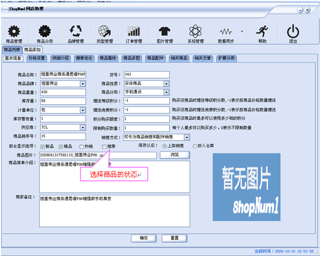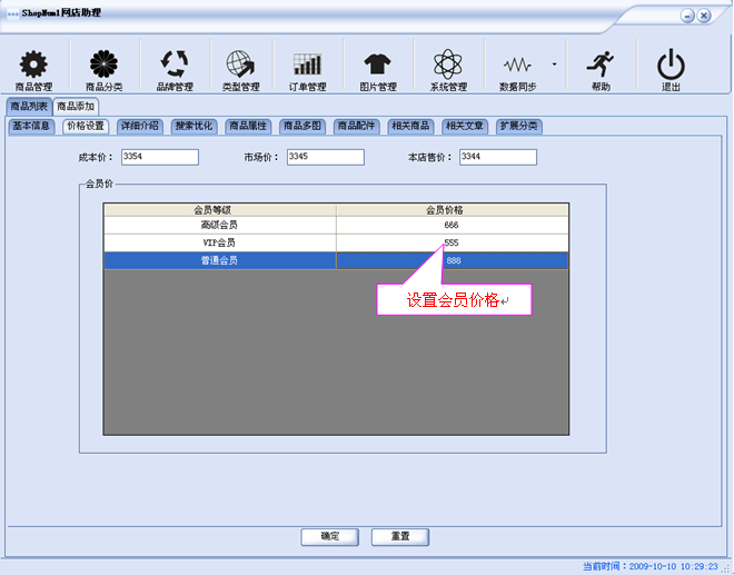 在連接商店之后,您就可以對商店中的商品類別和商品等數(shù)據(jù)進行本地編輯,本地編輯和網(wǎng)上編輯功能一致。屬性包括:商品名稱 庫存編號 品牌 成本價格 市場價格 本店售價 重量 商品類型 商品分類 庫存量 計量單位 商品警告數(shù)量 關(guān)鍵字 詳細頁面標題 詳細頁面描述 贈送會員消費積分 贈送會員等級積分 積分購買額度 每人次限夠數(shù)量 轉(zhuǎn)為實體商品 上架 推薦 新品 精品 熱銷。