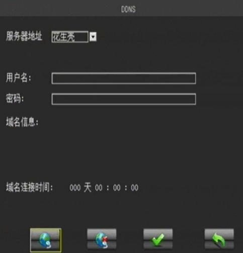 7) DDNS 設置:本系統(tǒng)支持動態(tài)域名解析設置。動態(tài)域名解析服務需要向動態(tài)域名