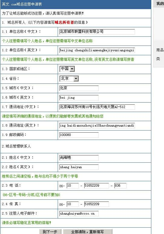 填寫注冊域名所有人信息,提示國內(nèi)域名必須單位注冊,(不能