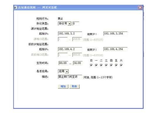 禁止源地址范圍為192.168.3.2-192.168.3.254訪問目的地址范圍為