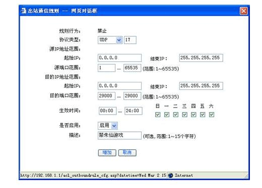 (2) 設(shè)置出站通訊策略:添加如下規(guī)則,禁止所有IP 發(fā)往目的端口為29000的UDP 報文通過(頁